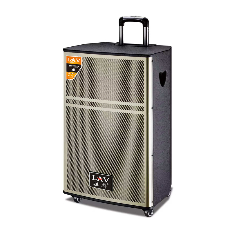 产品描述:15英寸重低音、号角高音、USB/SD插卡、消原声/伴唱、内置蓝牙、声音大传播远、支持无线/有线话筒/吉它输入、12A大容量电池、一键录音、一键话筒优先、360度万向轮